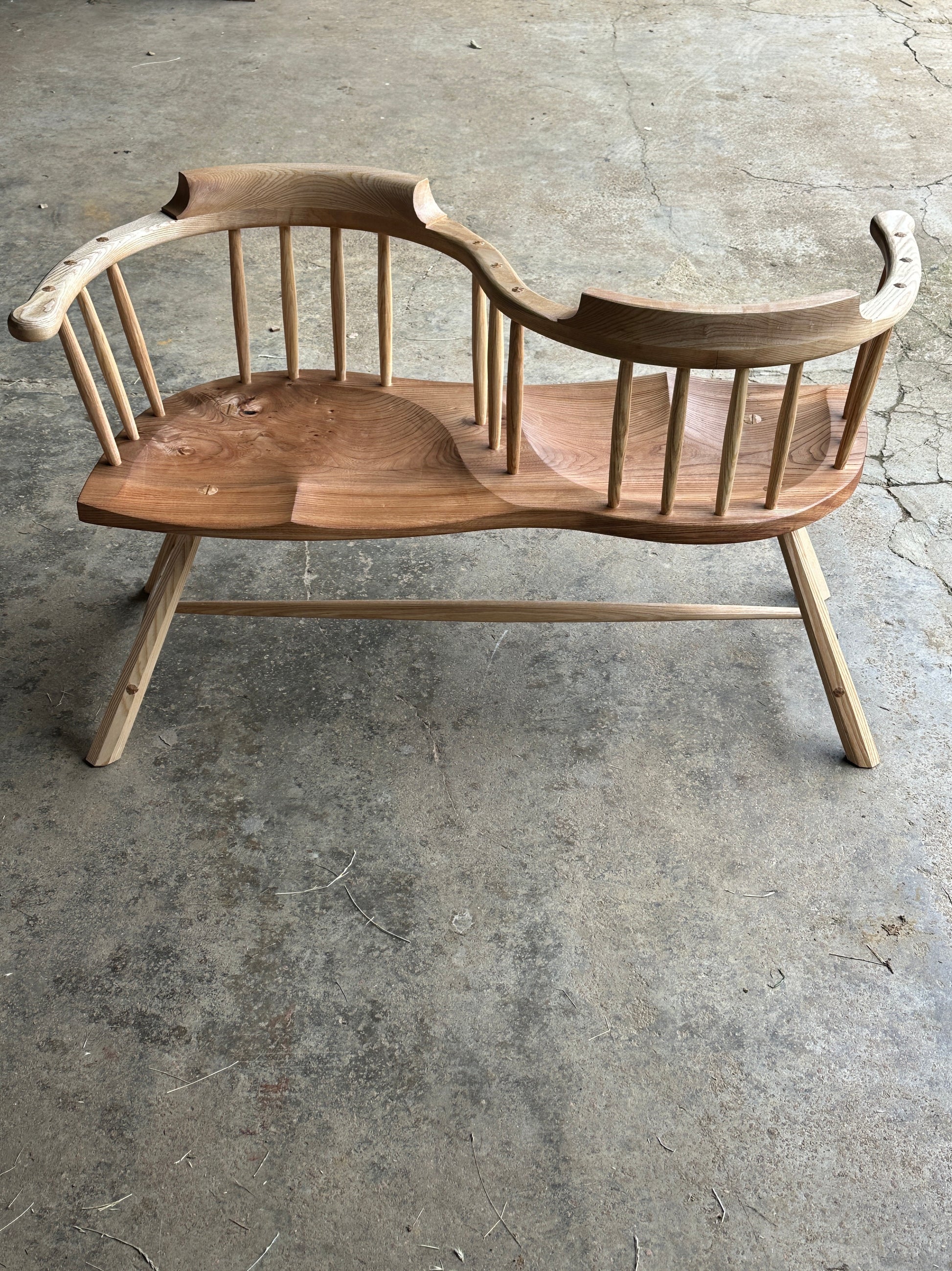 The seat is made from elm which is the best choice owing to it's interlocking grain, making it extremely strong and difficult to split. The arm, legs, sticks and stretchers are ash which offers strength and a pleasing tonal contrast.