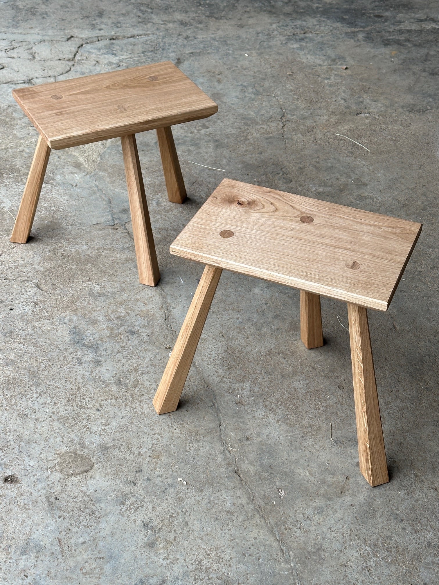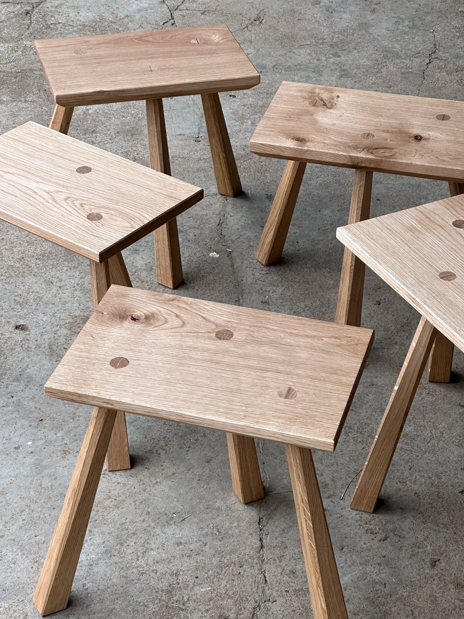 Entirely made by hand, the legs are tapered using hand planes, from square at the bottom, up to octagonal and finally in to a round tenon which is wedged through the seat for extra strength.